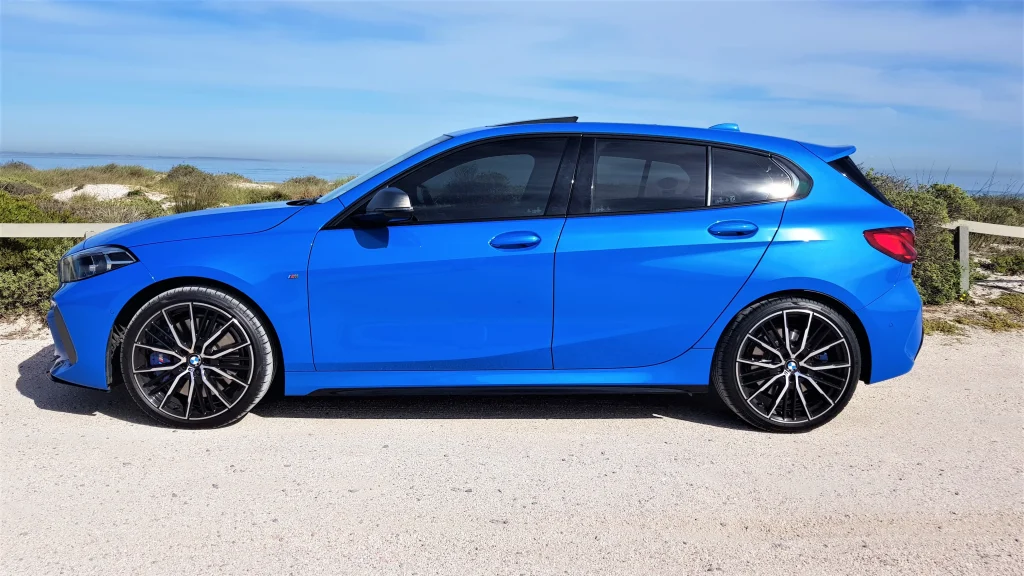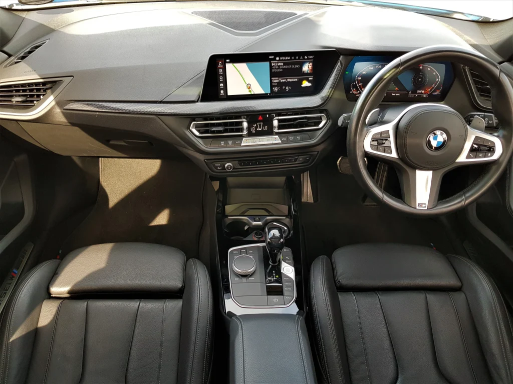 The BMW M135i, with its sleek lines and contemporary styling, is equipped with a cabin that marries sportiness with luxury, making for a comfortable yet exhilarating driving experience.